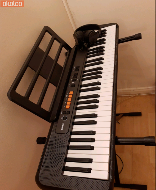 Includes: casio keyboard ct-s100, headphones, stand, original protective plastic bag and box.