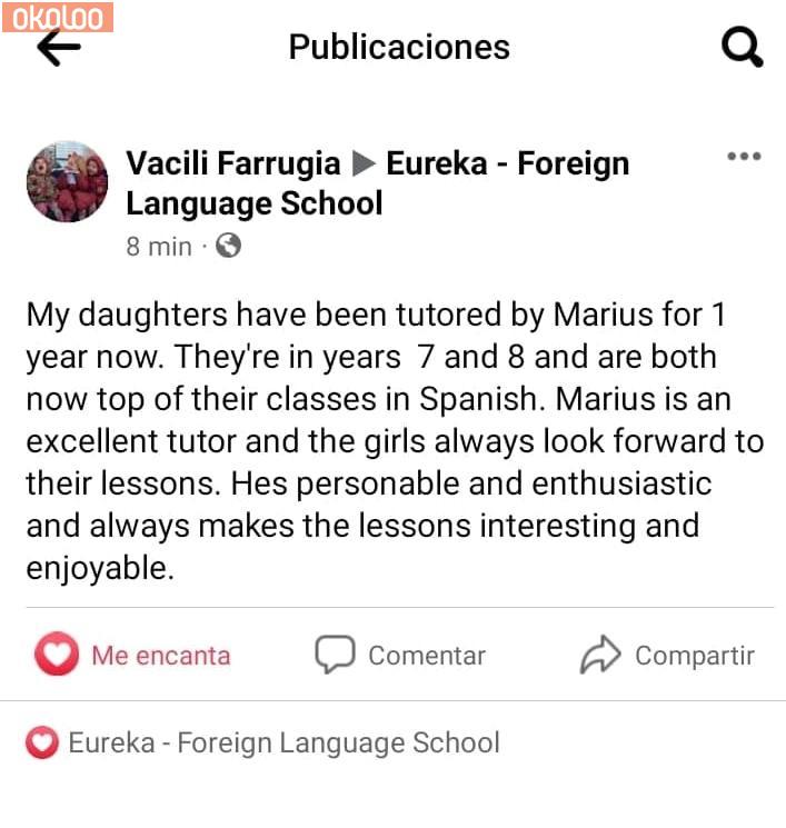 I’m Marius and I’m a professional Spanish native teacher, language coach, and a MA graduate of Spanish and Portuguese language, culture, and methodology in teaching foreign languages with over 15 years of experience. I am the founder of Eureka Foreign Language School.