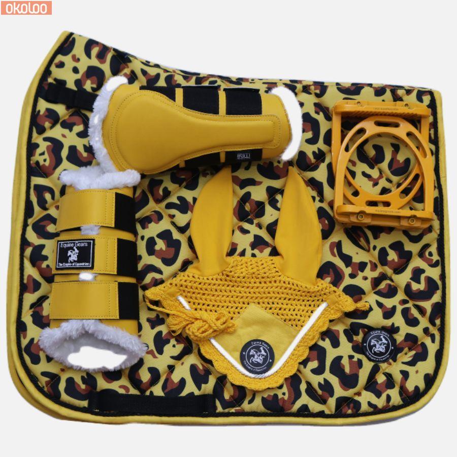 Equine Full kit of Leopard Numnah / Ear Bonnet / Brushing Boot / Stirrup