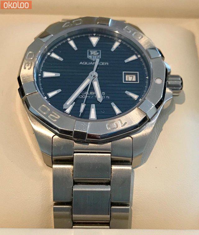 Aquaracer version with blue dial. Stainless steel bracelet, automatic movement along with date function. Water resistent to 300m. Saphire crystal glass. Watch is in fantastic condition and comes with box and all other documents from purchase. Bought from Goldsmiths in Welwyn Garden City and is 100% genuine, original order with box. Any questions please let me know.