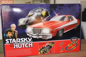 Marks & Spencer Starsky & Hutch Scalextric set, includes a Ford Gran Torino and Chevrolet Corvette, large figure of eight track and lap counter and timer. Enabling you to race each other. Ideal gift for all ages. In perfect condition.